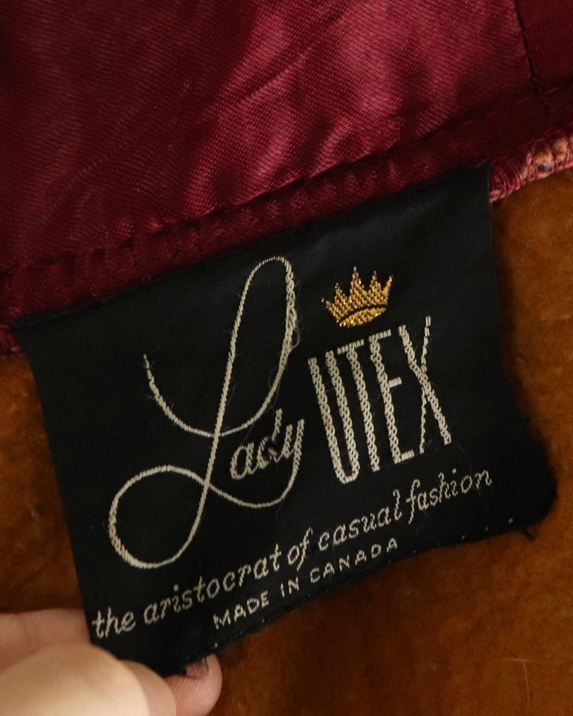 No major flaws, has some staining and discoloration. Made by Lady Utex. No size tag, estimated to fit a medium best.